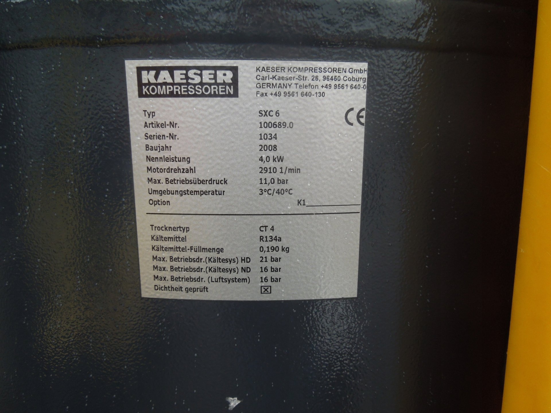 Sprężarka śrubowa KAESER SXC6 maszyna ze zbiornikiem i osuszaczem powietrza po serwisie